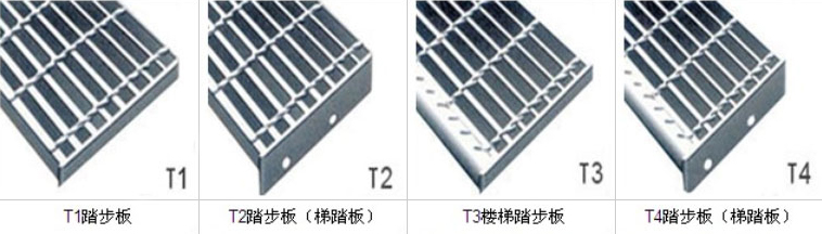 舉例:T1G253/30/100PG以上規(guī)格是采用25×3普通平面型扁鋼,扁鋼間距為30mm,橫桿間距為100的熱鍍鋅T1`踏步板。