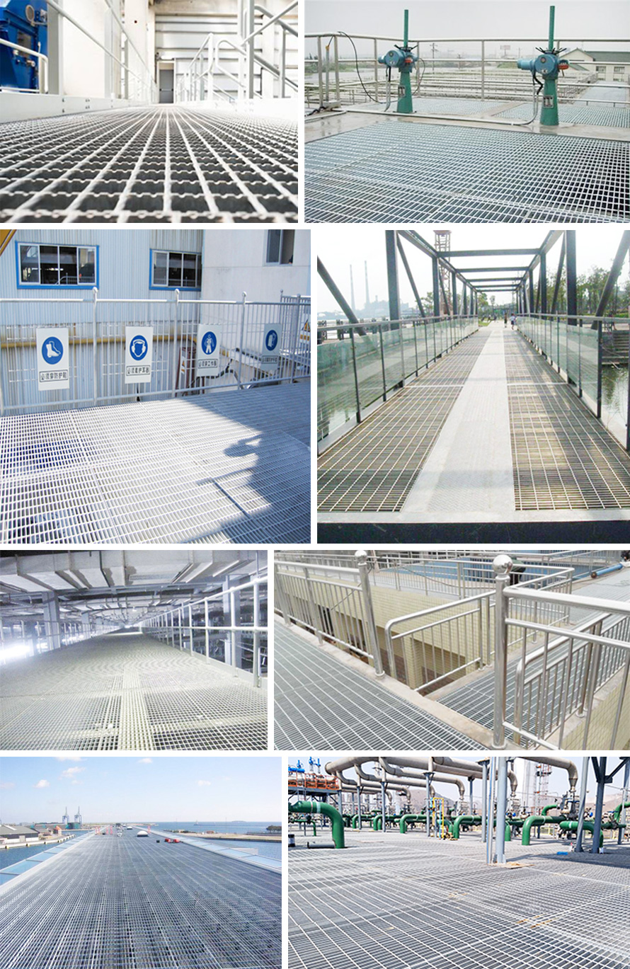 主要用作工業(yè)平臺,鍋爐平臺,環(huán)保設備,梯踏板,扶欄,通道地板,鐵路橋側道,高空塔架平臺,排水溝蓋,井蓋,道路隔柵,立體停車場,機關、學校、工廠、企事業(yè)、運動場、也可用作民宅的外窗,陽臺護欄,高速公路、鐵路的護欄等。
